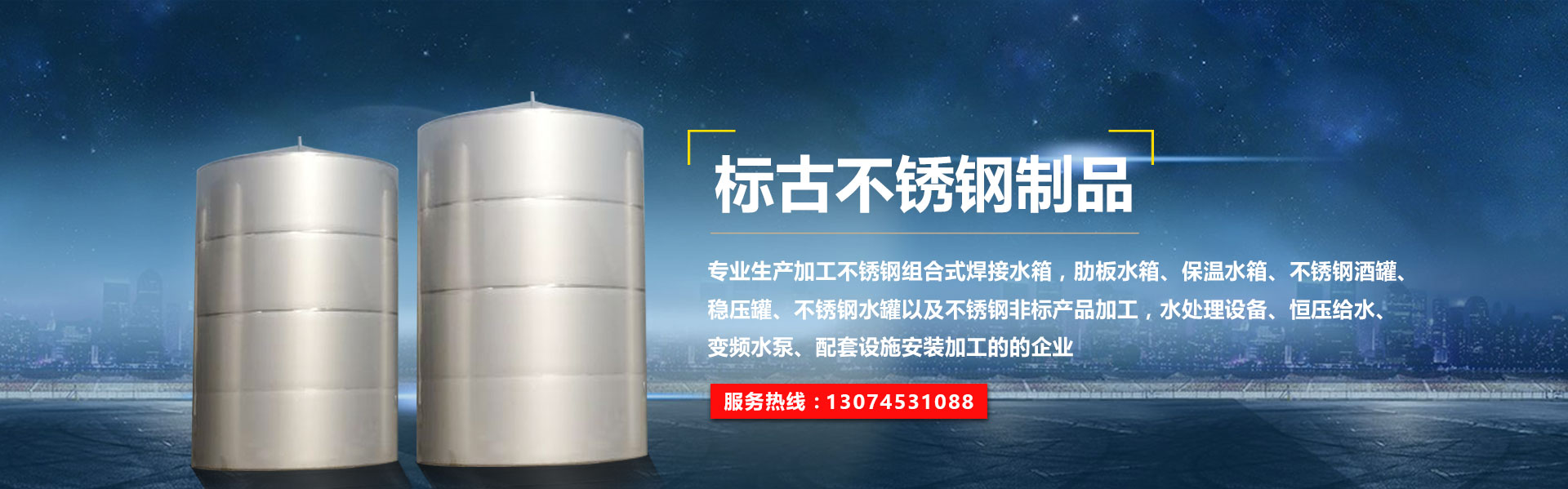 哈爾濱標(biāo)古不銹鋼制品有限公司專業(yè)生產(chǎn)加工不銹鋼組合式焊接水箱,肋板水箱、保溫水箱、不銹鋼酒罐、穩(wěn)壓罐、不銹鋼水罐以及不銹鋼非標(biāo)產(chǎn)品加工,水處理設(shè)備、恒壓給水、變頻水泵、配套設(shè)施安裝加工的的企業(yè)。本公司以“為客戶提供滿意的服務(wù)”為宗旨,本公司位于道外區(qū)保障街9號,歡迎洽談